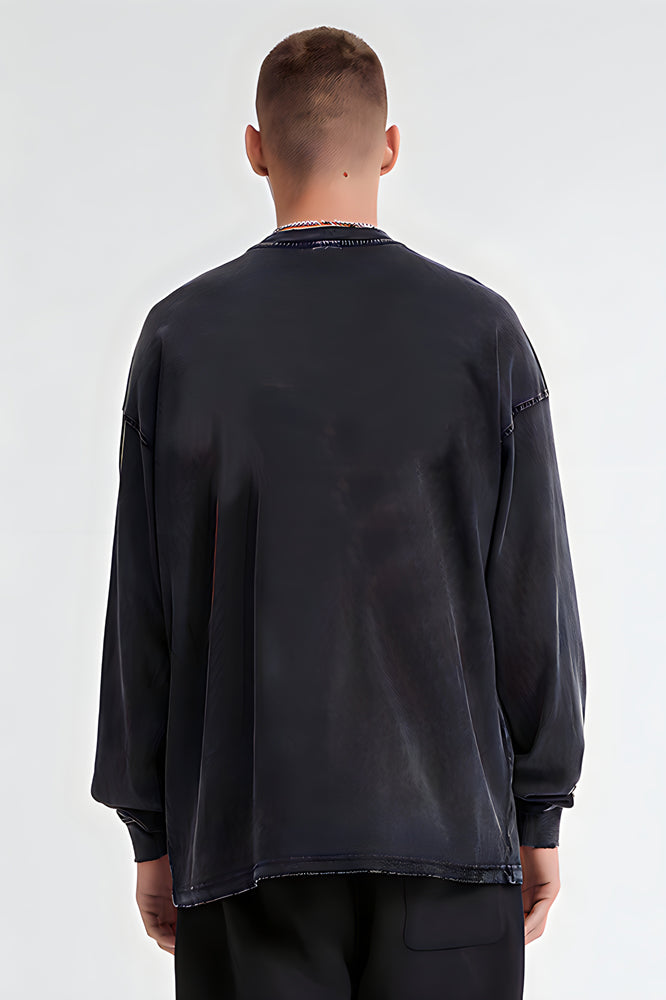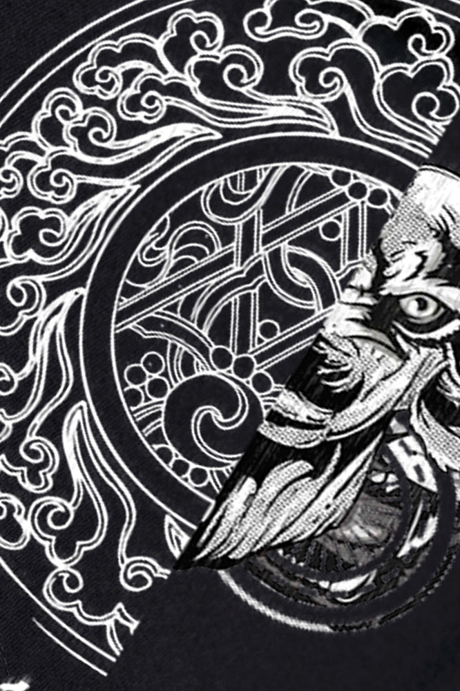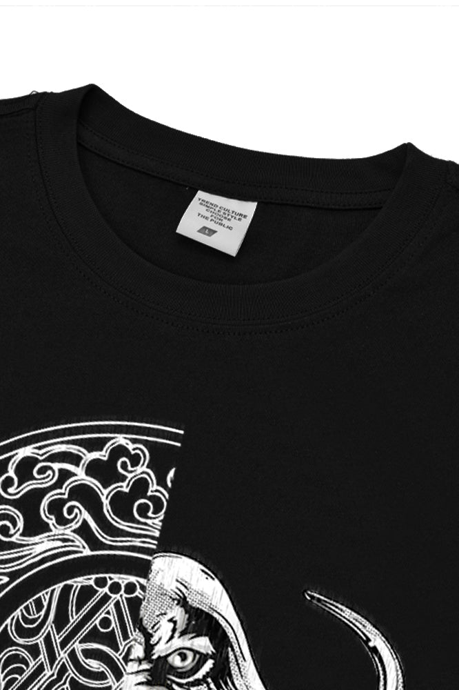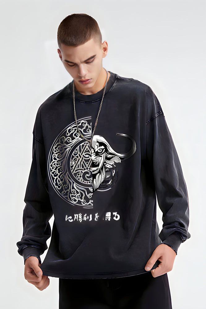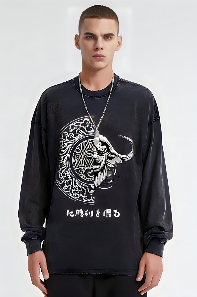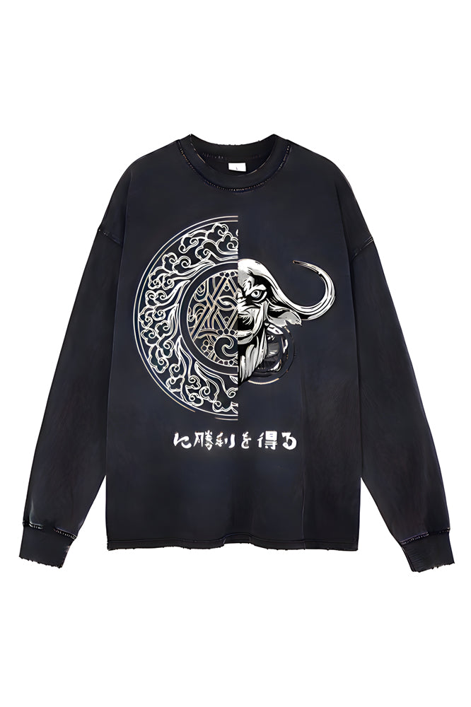 round Print Black Graphic Cow and jade wall Pullover